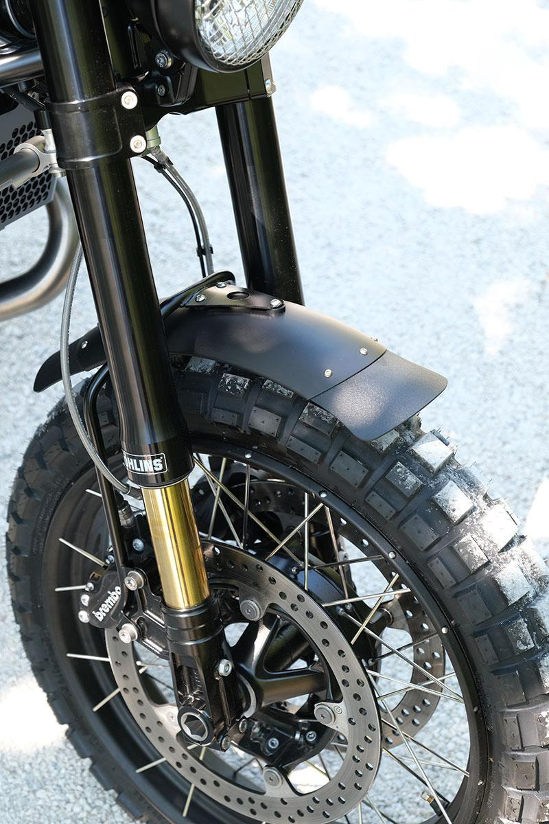 Las suspensiones de serie de los modelos nineT son bastante básicas, para hacer tu moto más prestacional y confortable hemos estudiado y probado una serie de posibilidades, esta solución es el TOP de gama. Fue un trabajo largo, pero el resultado sorprendió incluso a nosotros, la bici cambia de carácter y se vuelve mucho más divertida y utilizable en cualquier tipo de ruta. Esto te permitirá tener suspensiones de competición personalizadas y la comodidad de conducción será fantástica. Hemos implementado una fantástica horquilla Öhlins FG 424 con placas y pies especialmente diseñados, mecanizados a partir de CNC sólido. Los ajustes de compresión y rebote se realizan fácilmente. La nueva horquilla delantera ofrece una mejora significativa en el manejo tanto en carretera como fuera de ella. Se ha rediseñado el diseño de las placas y los pies para que todo el frente sea muy "mezquino" y que todo sea enchufar y listo. Podrás reutilizar: las pinzas originales y sus tornillos correspondientes, el soporte del faro original y los elevadores del manillar, la pipa de dirección, las tuercas de sujeción y los cojinetes.