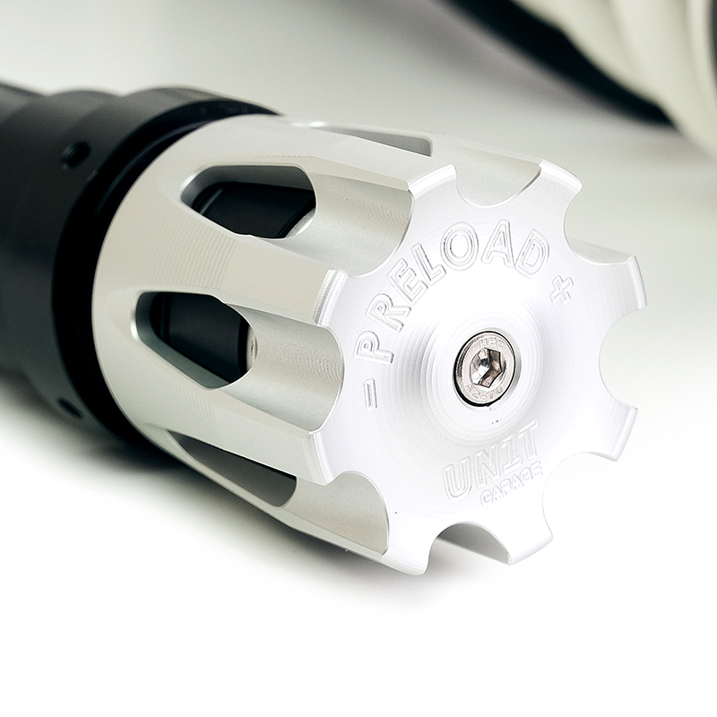 Perilla mecanizada en aleación de aluminio macizo de alta calidad, sustituye la perilla de plástico original en la precarga del amortiguador original.