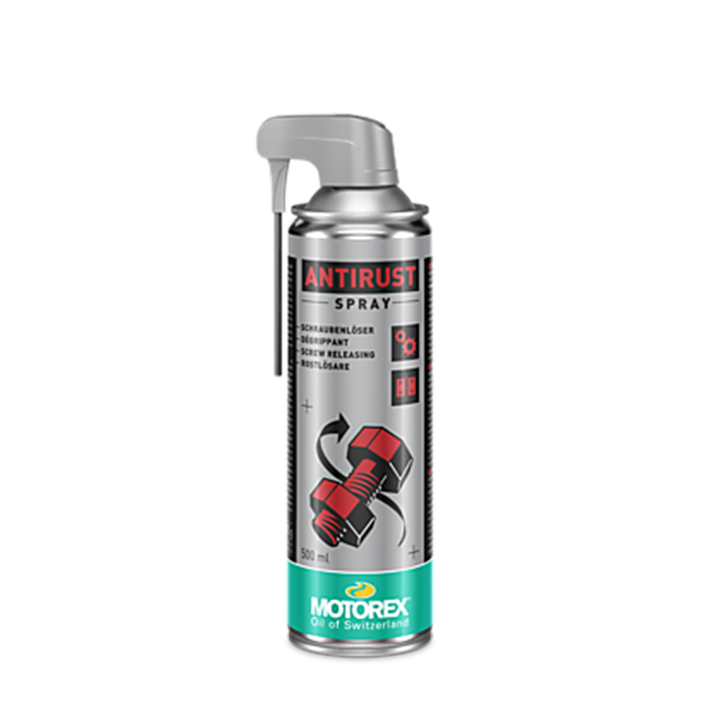 El Spray Antióxido Motorex elimina el óxido y afloja tornillos gracias a su notable poder de penetración. Actúa sobre piezas metálicas oxidadas. Protege contra la corrosión y no deja pasar la humedad. Elimina el óxido, repele el agua y lubrica.
