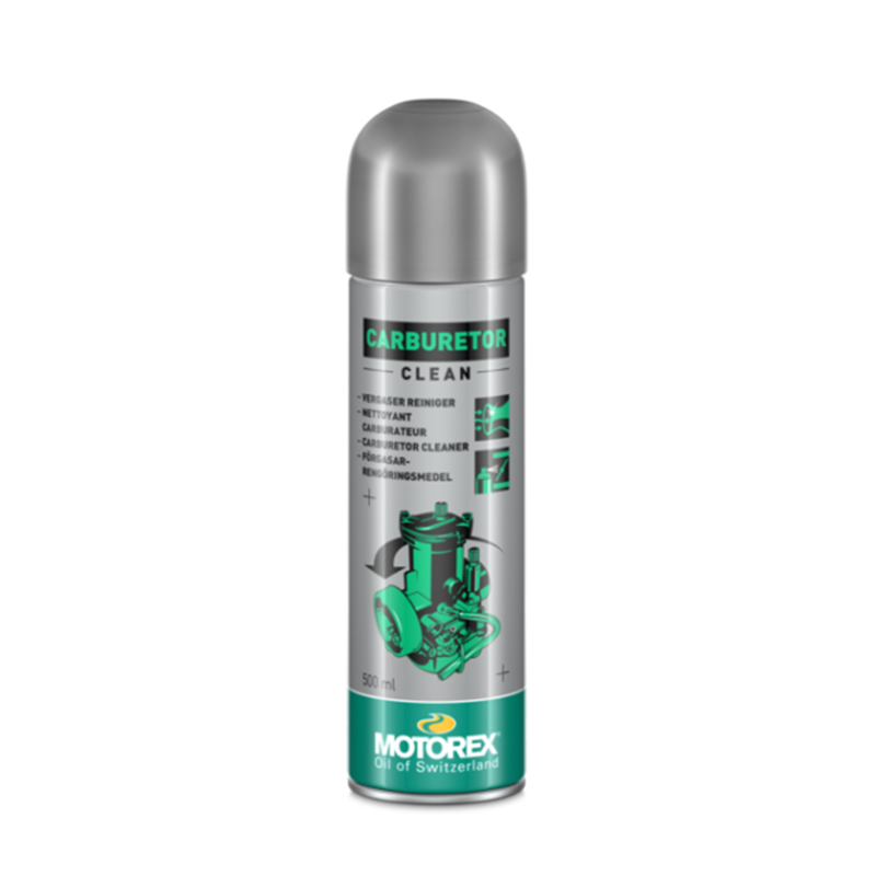 Spray limpiador de carburador Limpiador de carburador en aerosol Motorex. Limpia a fondo los canales, válvulas de admisión, tubos Venturi, tornillos de ajuste y piezas del carburador. Apto para todo tipo de carburadores. Probado con convertidores catalíticos.