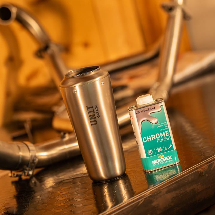 El Pulimento para Cromo Motorex proporciona un brillo de espejo en superficies de cromo, acero y aluminio. El producto limpia, pule y protege la superficie. Por ejemplo, permite limpiar la goma quemada del sistema de escape de la motocicleta. Se crea una película protectora muy fina, invisible y brillante sobre la superficie limpia, que la protege contra la corrosión.